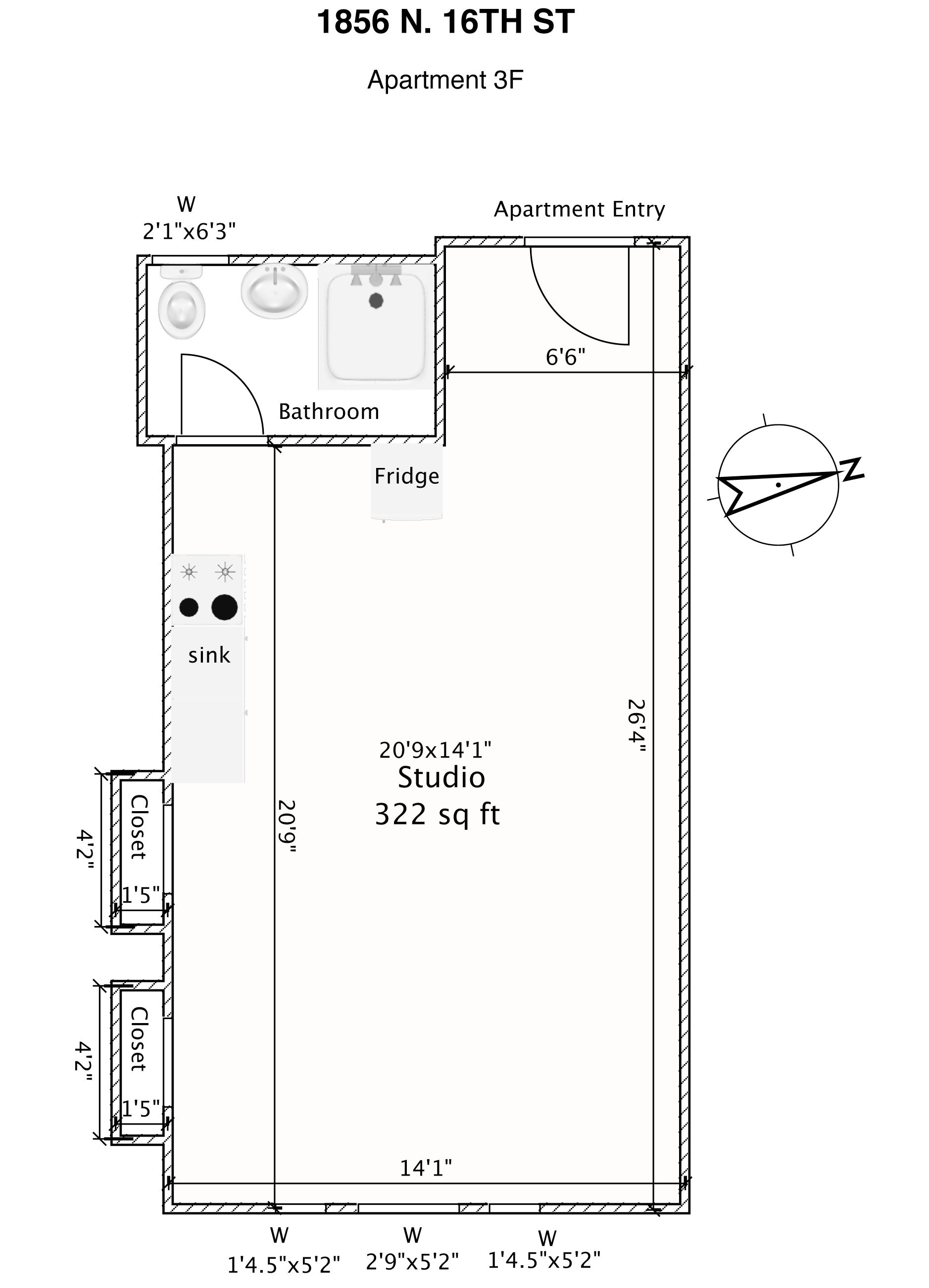 This beautiful studio apartment is directly across from the athletic track & turf field. Fully lit all night and Temple 24-hour security booth right across the street. This is the best off campus location there is!